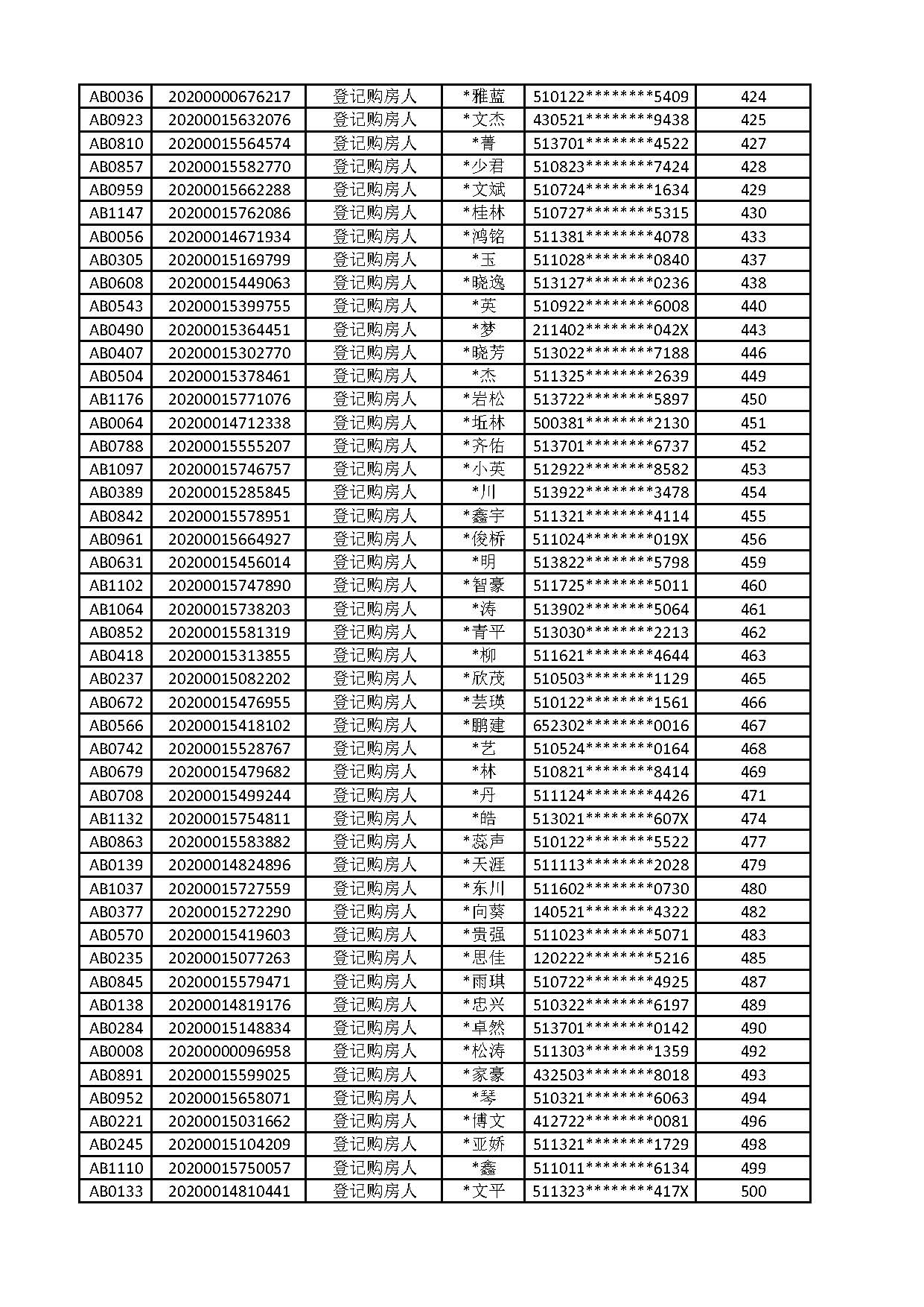 【概要描述】國棟南園貳號 無房居民家庭(含棚改貨幣安置住戶)登記購房人名冊(復核名單)